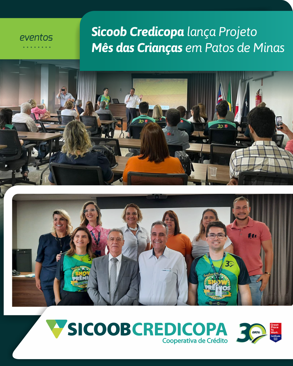 Na manhã desta quarta-feira (06/09) o Sicoob Credicopa lançou a 2ª edição do projeto Mês das Crianças – Cooperar e Semear Sorrisos. Com o sucesso do ano anterior, a cooperativa proporcionou momentos de muita diversão para as crianças da cidade e da região, fomentou o comércio, movimentou o turismo e fortaleceu projetos sociais com a doação da renda da campanha repassada ao Fundo da Infância e Adolescência de Patos de Minas (FIA). Os ingressos serão comercializados aos cooperados do Sicoob Credicopa e filiados ao Sindcomércio com o objetivo de estimular a venda no comércio local. Esta iniciativa segue as diretrizes do 7º princípio cooperativista, Compromisso com a Comunidade, que ressalta a importância de contribuir para o desenvolvimento sustentável das comunidades. Todo o impacto de carbono do projeto será calculado pelo Comitê de Sustentabilidade do Sicoob Credicopa que irá elaborar uma ação de plantio de árvores para amenizar ou eliminar o seu referido efeito. Vai ser um fantástico mundo de alegria durante os dias 04 até 22 de outubro. A carreta Trem Bala ficará estacionada em frente à Praça do Fórum. Além da carreta, a criançada também poderá se divertir nos brinquedos na Praça, vai ter: pula-pula, escorregador, cama elástica, centopeia e tobogã. O Sicoob Credicopa realizará no dia 12 de outubro, na Praça do Coreto, em comemoração ao Dia das Crianças distribuição de bolas, ioiôs e pipocas. Este ano, contamos com a parceria do Sindcomércio/Sesc que fará uma ação na Praça do Coreto, no dia 06 de outubro, com muitas brincadeiras. O projeto Espaço de Lazer contará com brinquedos, brincadeiras, atividades lúdicas e oficinas, além de jogos recreativos, desportivos e eletrônicos para que as famílias e a comunidade possam se divertir juntas. Durante os 18 dias haverá barracas de alimentação na Praça do Coreto e todo o dinheiro arrecadado na comercialização dos alimentos será destinado ao FIA. Para adquirir o ingresso basta comprar a partir de R$ 50,00 nas lojas identificadas, o mesmo vale para os brinquedos ou para a carreta. Vem se divertir com a gente!