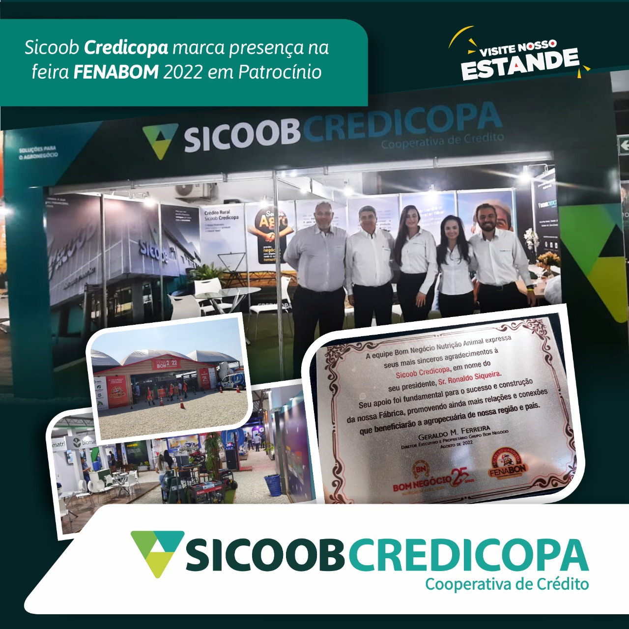 Começou a FENABOM 2022 em Patrocínio. A feira está localizada no terreno da nova Fábrica de Nutrição Animal, na BR 365, próximo ao posto Café Mineiro em Patrócinio. O evento é voltado para Negócios, mas também haverá entretenimento e ainda o sorteio de uma Strada 0Km. Estamos com várias linhas de crédito e taxas especiais no evento, para você fazer bons negócios! Na oportunidade, ontem na inauguração, o Sicoob Credicopa foi homenageado com uma placa em agradecimento ao fundamental apoio para o sucesso e construção da nova fábrica da BN Nutrição Animal. Visite o stand do Sicoob Credicopa e venha tomar um delicioso café com a gente.