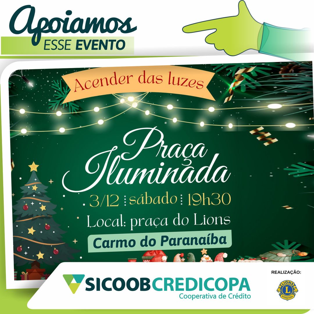 Carmo do Paranaíba está com uma linda decoração de Natal e uma programação especial. O Sicoob Credicopa é patrocinador desta ação e convida você e sua família neste sábado (03/12), às 19:30h, para o acender das luzes, chegada do Papai Noel e Mamãe Noel e a estreia do super Trenzinho de Lata, na Praça do Lions Clube, para alegrar ainda mais o nosso Natal. Além de show ao vivo e praça de alimentação. Desejamos um feliz e abençoado Natal e convidamos a todos para valorizar o comércio local e vivenciar esse momento.
