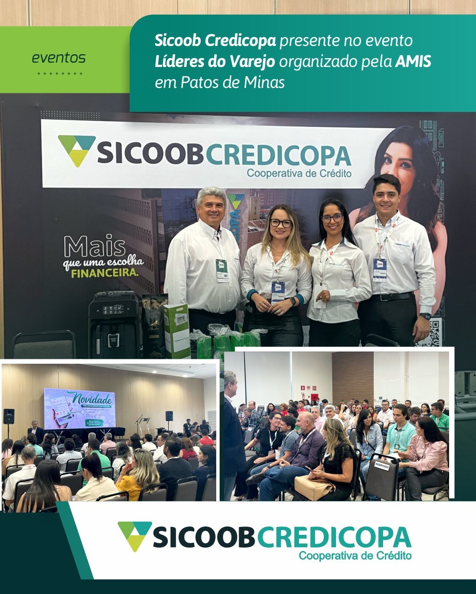 O Sicoob Credicopa agradece todos que participaram e prestigiaram nosso estande no Líderes do Varejo organizado pela Associação Mineira de Supermercados (AMIS) e realizado no Centro de Convenções da Unipam, no dia 13 de março. O evento destinado a empresários e profissionais do varejo, especialmente supermercadista, e representantes da indústria fornecedora. O Líderes do Varejo que reuniu 464 participantes de 32 cidades teve como objetivo a realização de negócios, relacionamento empresarial e desenvolvimento profissional. Durante o evento, a AMIS realizou uma campanha beneficente junto às pessoas participantes e às empresas expositoras para ajudar instituições de atuação social da cidade. Foram recolhidos 180 kg de itens como alimentos não perecíveis, produtos de higiene e beleza e de limpeza doméstica. Os donativos foram entregues diretamente a representantes da Casa da Sopa ''Luz e Amor'' (CASLA).