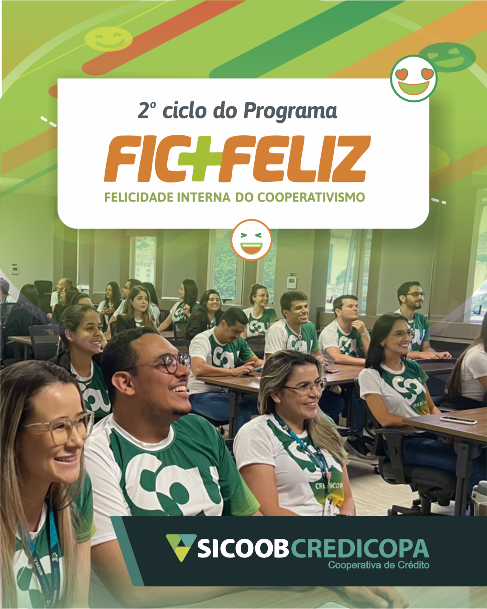 É com imensa satisfação que realizamos o 2º Ciclo do Programa FIC + FELIZ – Felicidade Interna do Cooperativismo do Sistema OCB. O evento foi realizado na tarde de quinta-feira (22/02) e a Credicopa preparou com muito carinho esse momento, desde o café até a palestra. O Programa FIC+Feliz é uma ferramenta de bem-estar e qualidade de vida e alinhados a está metodologia, o Sicoob Credicopa abraçou mais uma vez a ideia, visando a melhoria no ambiente de trabalho. A Analista de Educação e Desenvolvimento Sustentável do Sistema OCEMG, Fabiana Rocha, falou sobre o Programa FIC + FELIZ – Felicidade Interna do Cooperativismo do Sistema OCB. Em seguida, o palestrante e pesquisador de performance e comportamentos, escritor sobre transformação, conquistas autênticas e felicidade, mestre em psicologia e especialista em educação, pela PUC Minas, Otavio Grossi falou sobre: “A felicidade e as conquistas autênticas: transformando comportamentos organizacionais”. Foi um evento de emoções e todos estão engajados para dar sequência aos próximos passos do programa.