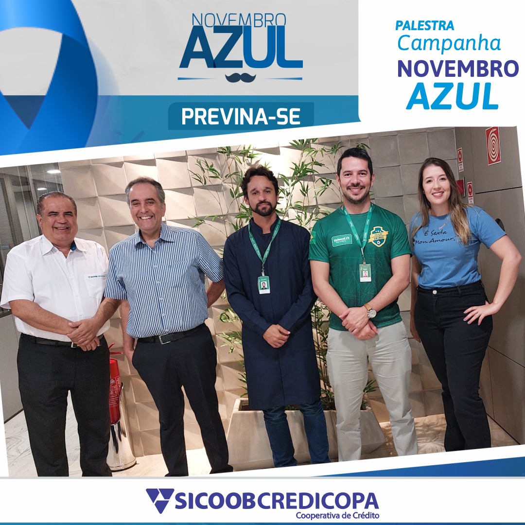 O Novembro Azul é celebrado com o objetivo de compartilhar informações e promover a conscientização sobre o câncer de próstata. Durante o mês de novembro, o Sicoob Credicopa realizou uma campanha interna de conscientização, com o intuito de contribuir para a redução da incidência e da mortalidade pela doença. Na última sexta-feira 25/11, os colaboradores vestiram de azul, para deixar registrado o nosso apoio a essa causa. Em parceria com a Unimed Patos de Minas, houve uma palestra com o geriatra Dr. Victor Nascentes Caixeta.