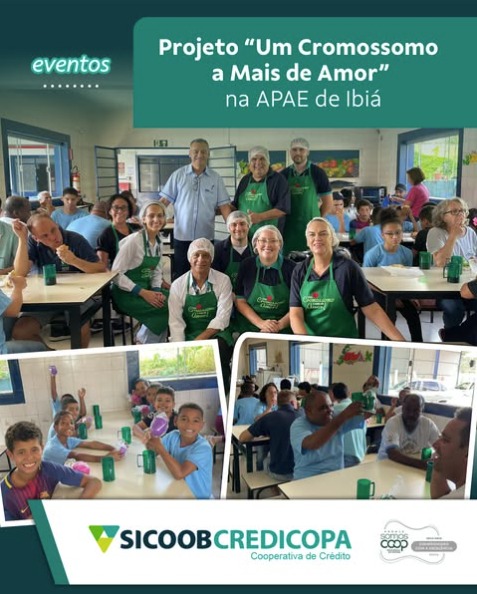 Na quinta-feira (13/02), o diretor administrativo e coordenador, Milton Roberto de Castro Teixeira, junto com a equipe de voluntários transformadores do Sicoob Credicopa e os colaboradores da agência de Ibiá, levaram a edição do projeto “Um Cromossomo a Mais de Amor” à APAE de Ibiá. O objetivo desta ação é proporcionar novas oportunidades para adolescentes e jovens em situação de vulnerabilidade, promovendo a integração e inclusão de pessoas com deficiência intelectual. A gastronomia se mostrou mais uma vez um poderoso agente de transformação social! Através de oficina de culinária, os participantes aprendem conceitos, dicas e receitas práticas que podem ser reproduzidas em suas casas, contribuindo para o desenvolvimento pessoal e a inclusão no dia a dia. Além disso, o Sicoob Credicopa garante todo o material necessário, como insumos e produtos, para que todos possam aprender e se desenvolver em um ambiente acolhedor e cheio de amor. O projeto é uma verdadeira demonstração de como a união e o carinho podem transformar vidas.