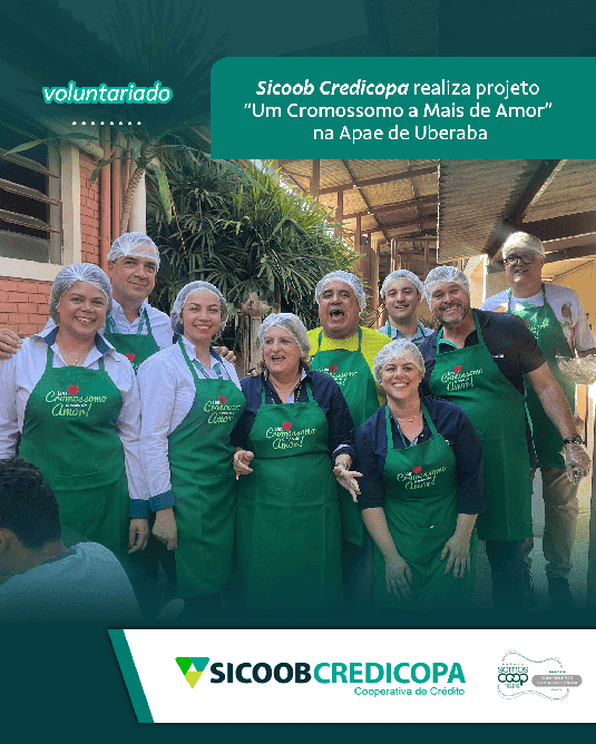 Na tarde da quinta-feira (29/08), na cidade de Uberaba o diretor administrativo e coordenador, Milton Roberto de Castro Teixeira e a equipe de voluntários transformadores, do Sicoob Credicopa, junto aos colaboradores das cooperativas Sicoob Credileite e Sicoob Credimed realizaram o projeto “Um Cromossomo a Mais de Amor” na Apae de Uberaba. Esta iniciativa busca propiciar novas oportunidades para adolescentes e jovens em vulnerabilidade, promovendo a integração dos jovens com deficiência intelectual da APAE. A gastronomia pode ser um agente de transformação social, sendo meio plausível para a promoção da inclusão de pessoas, um instrumento para o desenvolvimento humano. Nas oficinas de culinária é ensinado dicas, conceitos e receitas que os participantes podem reproduzir para a família. Os participantes recebem todo o material do Sicoob Credicopa, inclusive os insumos e produtos para aprender a preparar diferentes receitas. As oficinas são acompanhadas pelo diretor administrativo e coordenador, Milton Roberto de Castro Teixeira, onde é ensinado aos participantes da ação, desde a recepção no estabelecimento, passando pelo preparo das refeições até o ato de servir. Trata-se de um projeto de intercooperação entre o Sicoob Credicopa, Sicoob Credileite e Sicoob Credimed. Os jovens têm a oportunidade de participar do processo de preparo dos pratos, os quais são servidos aos participantes, despertando a socialização, trabalho em equipe, e cooperação para uma atividade mais lúdica e transformadora.