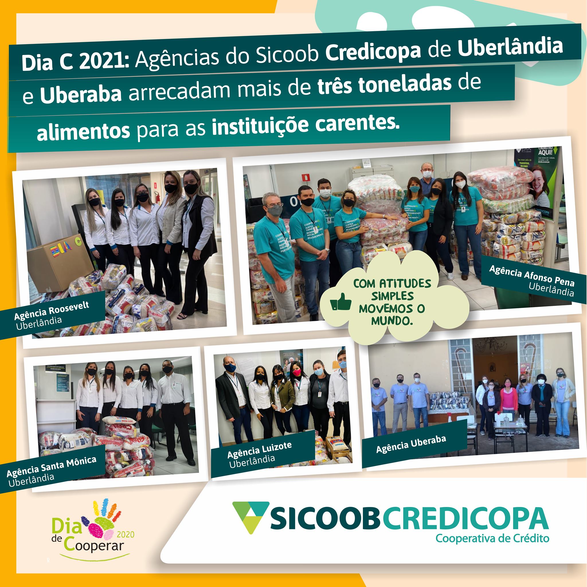 O Sicoob Credicopa trabalha pensando sempre em contribuir no meio onde atua, e com esse objetivo realizou em comemoração ao Dia C, campanhas nas agências de Uberlândia e Uberaba.