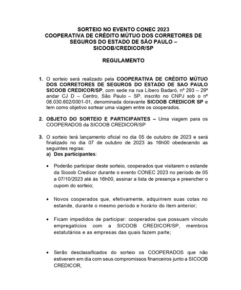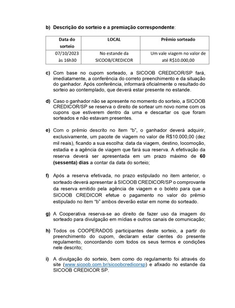 REGULAMENTO - VIAGEM - SICOOB CREDICOR/SP