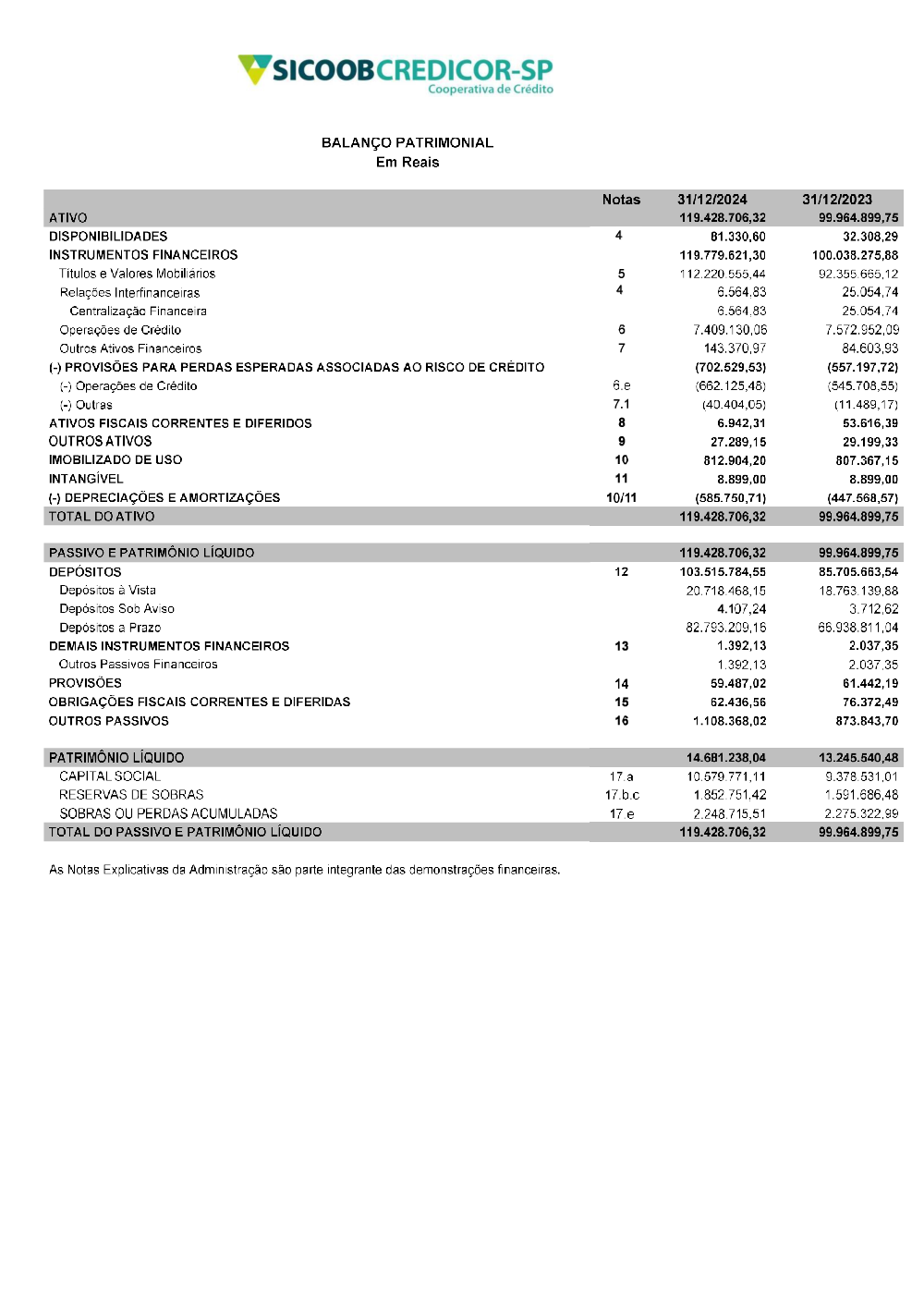 Notas Explicativas e Demonstrações Financeiras