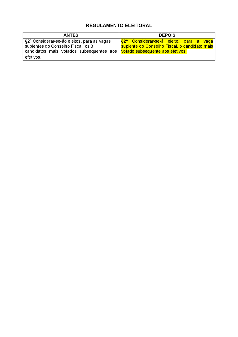 - Quadro Comparativo Sobre o Regulamento Eleitoral