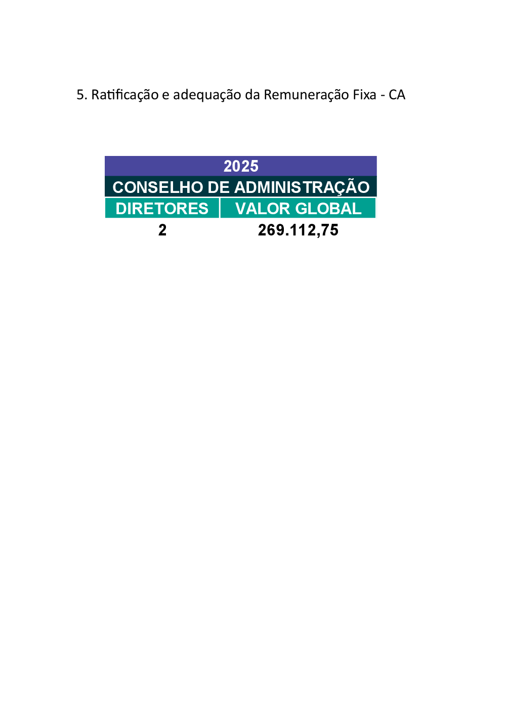 - Ratificação e adequação da Remuneração Fixa - CA