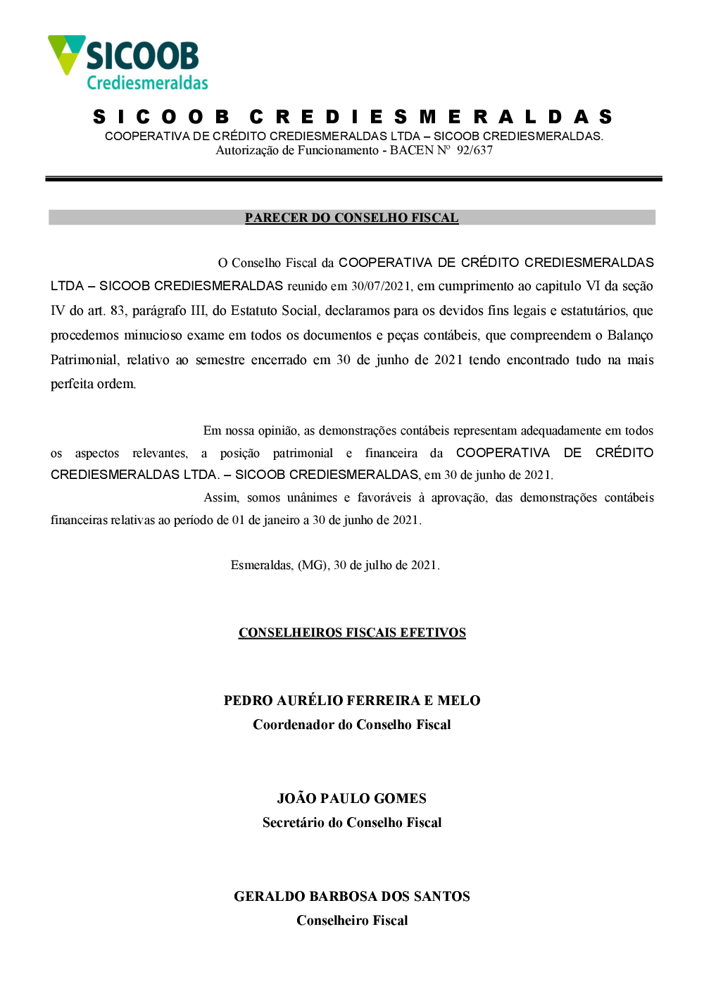 Parecer do Conselho Fiscal 1º semestre de 2.021 SICOOB CREDIESMERALDAS.pdf