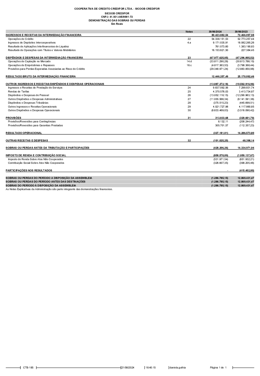 3 - Demonstração de Sobras ou Perdas Acumulado