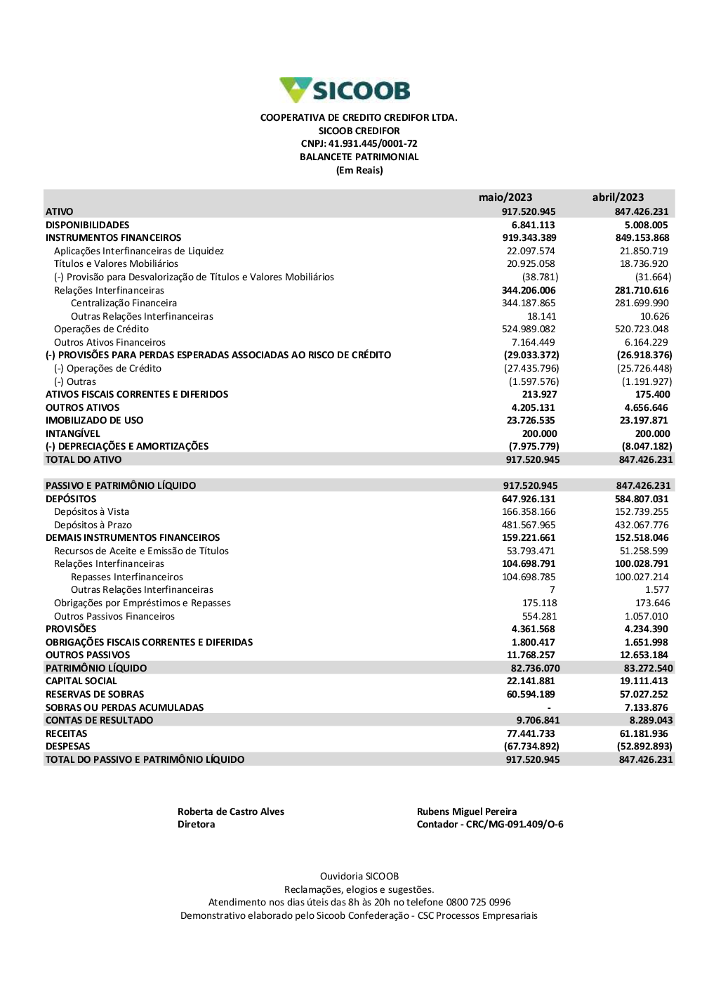 Demonstrações contábeis - Sicoob Credifor
