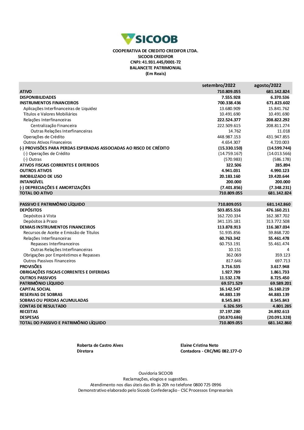 Demonstrações contábeis - Sicoob Credifor