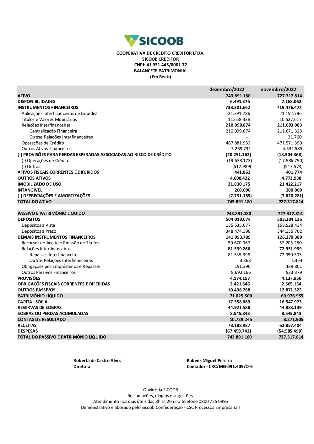 Demonstrações contábeis - Sicoob Credifor