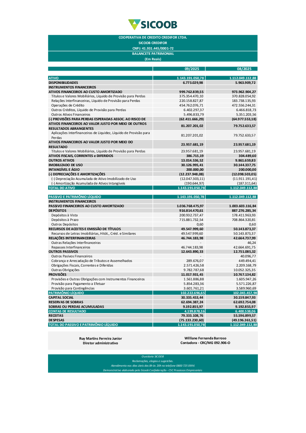 Demonstrações contábeis - Sicoob Credifor