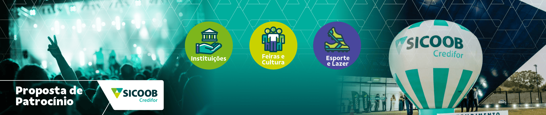 Entende-se como patrocínio, quando há inserção da logo nas peças de divulgação e espaço para a cooperativa colocar materiais de divulgação, como: balão inflável, windbanner, banner, faixa, distribuição de brindes etc.