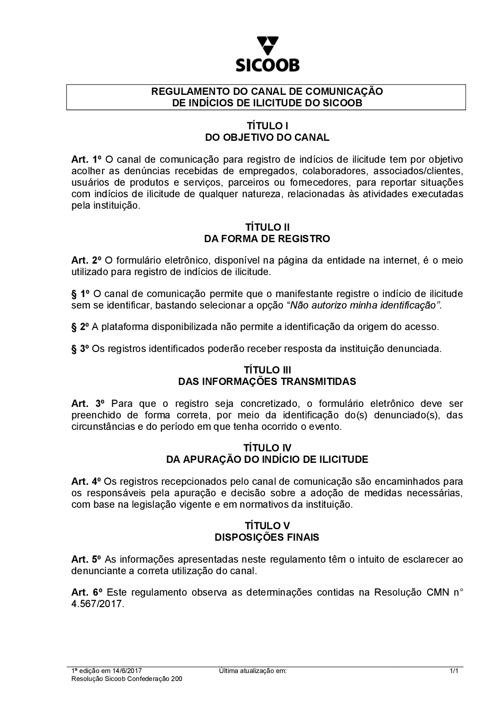 Regulamento do Canal de Comunicação de Indícios de Ilicitude do Sicoob