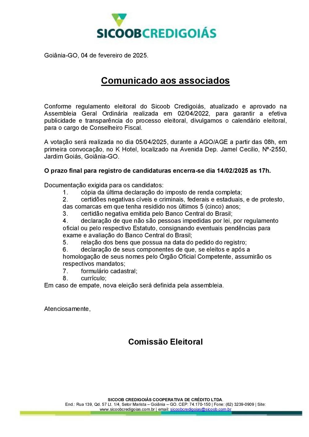 - COMUNICADO AOS ASSOCIADOS PARA REGISTRO DE CANDIDATURA