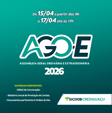 Confira abaixo o Edital de Convocação e demais documentos referentes à Assembleia Geral Ordinária e Extraordinária de 2026 do Sicoob Crediguaçu: