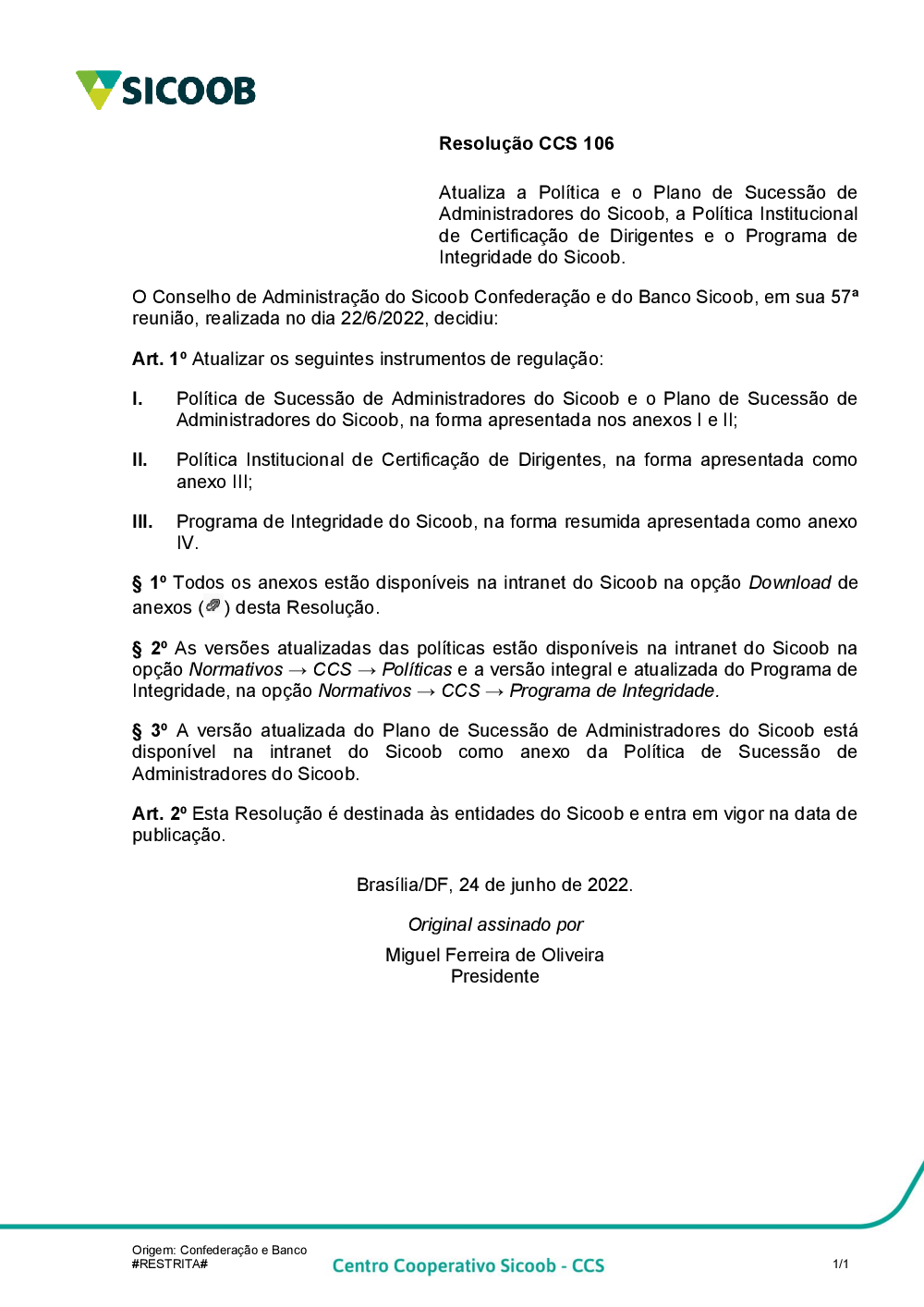 Política de Sucessão de Administradores do Sicoob Res 106-2022