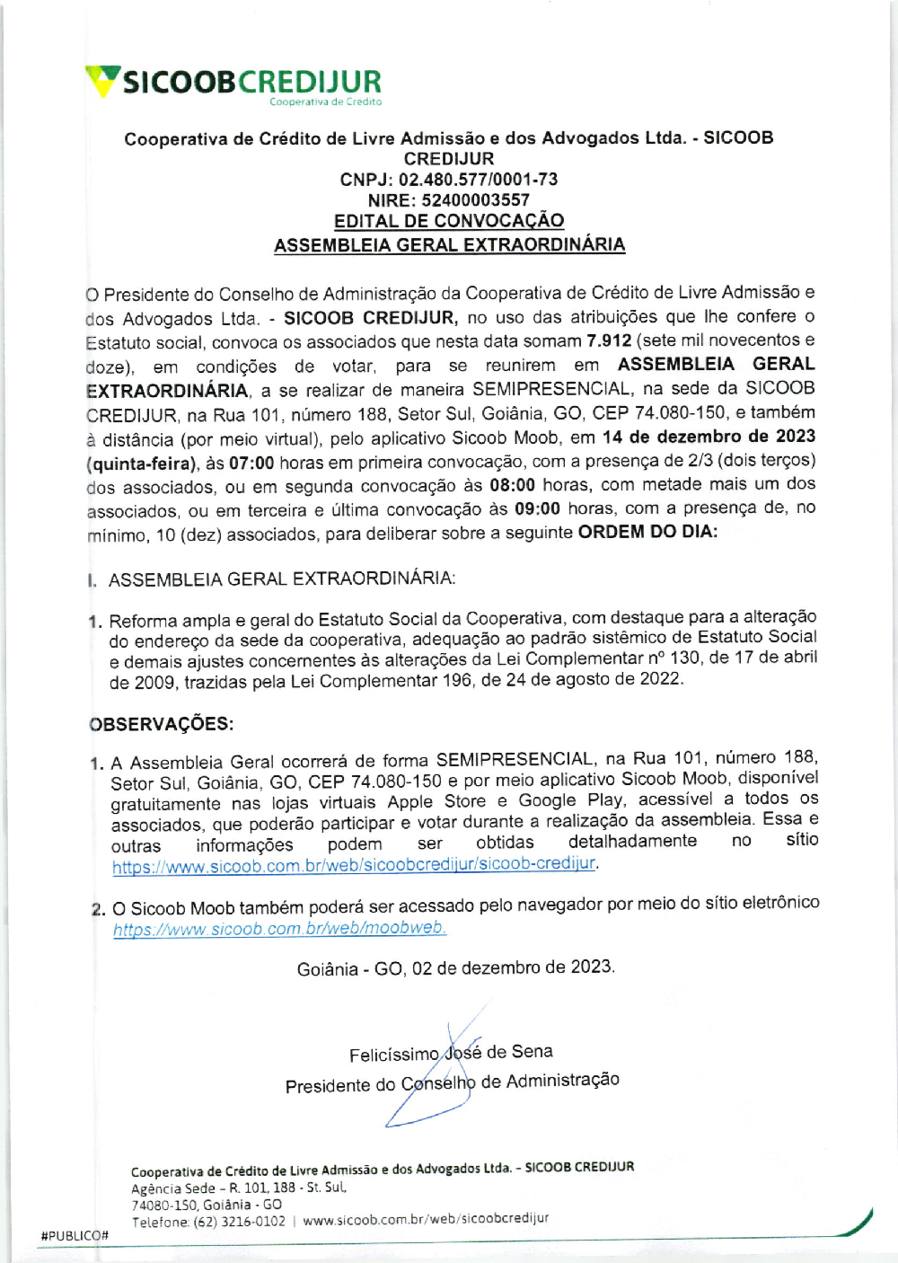 - Edital de convocação para Assembleia Geral Extraordinária - AGE - Sicoob Credijur