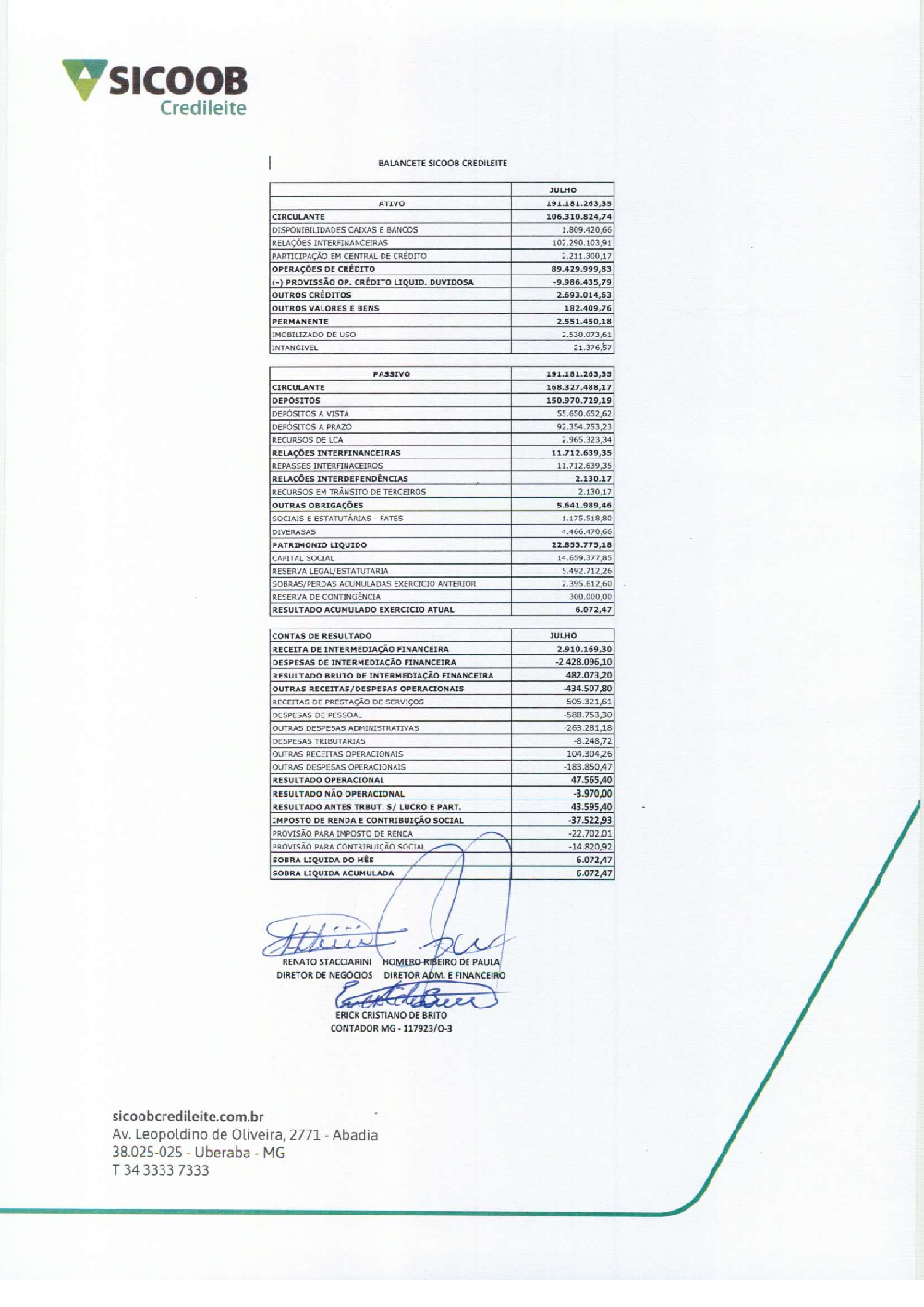 Balancetes - Sicoob Credileite