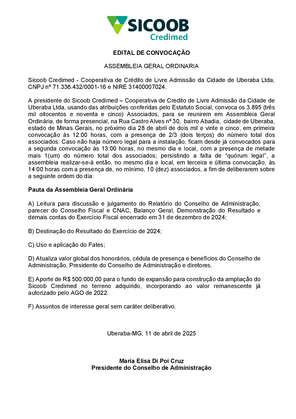 Neste espaço você pode conferir todos os arquivos referentes às nossas Assembléias Gerais Ordinárias e Extraordinárias