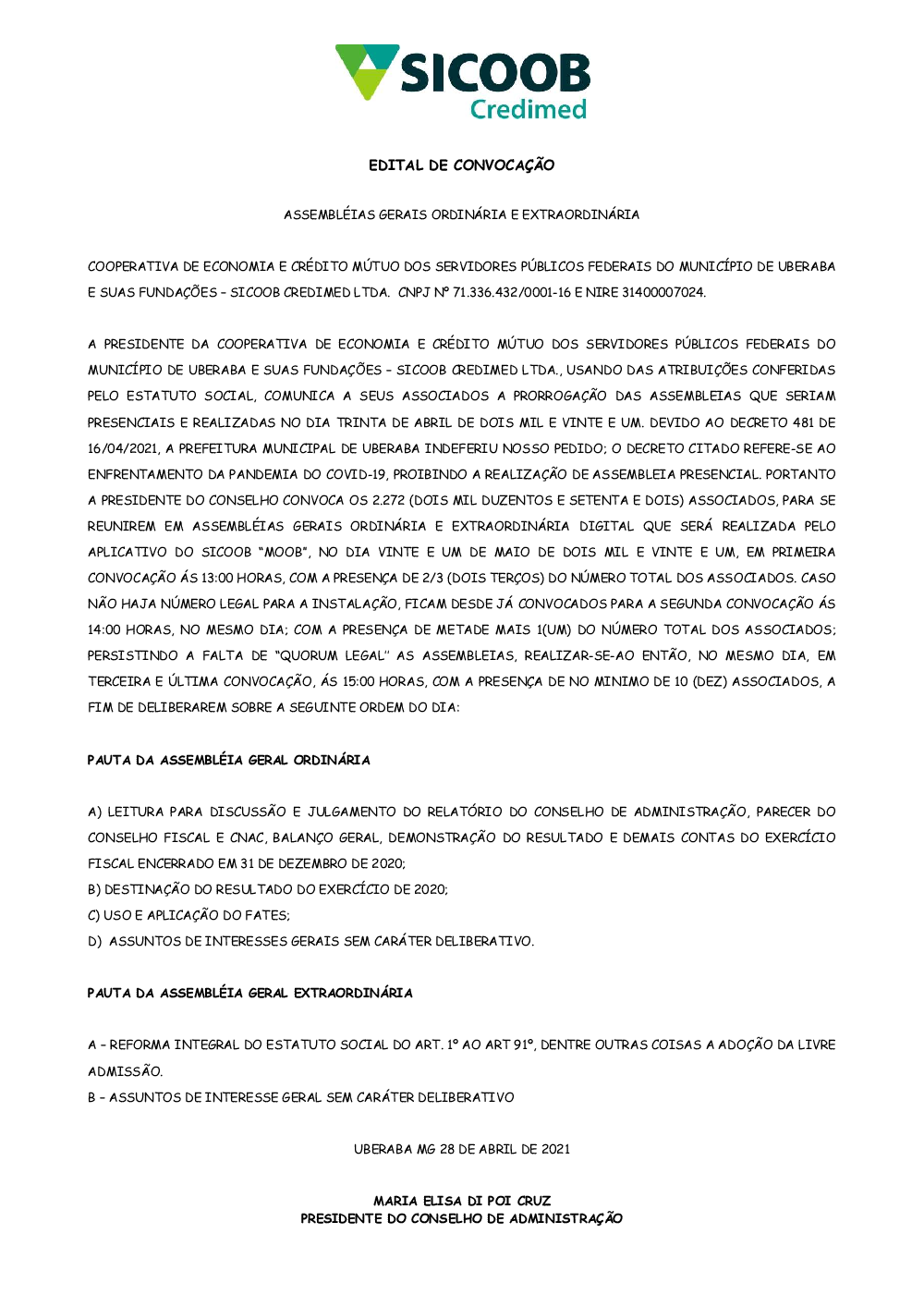 Neste espaço você pode conferir todos os arquivos referentes às nossas Assembléias Gerais Ordinárias e Extraordinárias