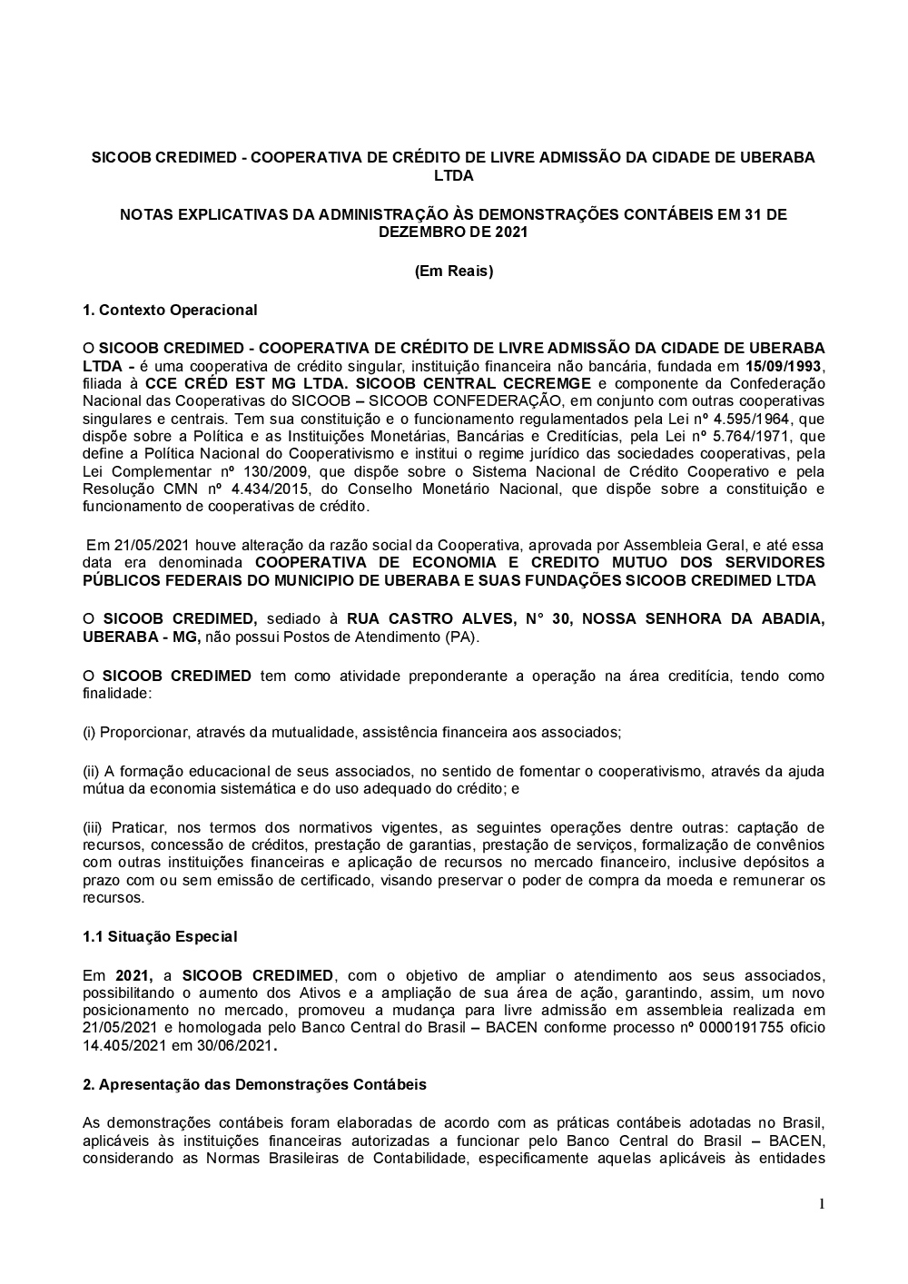 Demonstrações contábeis - Sicoob Credimed