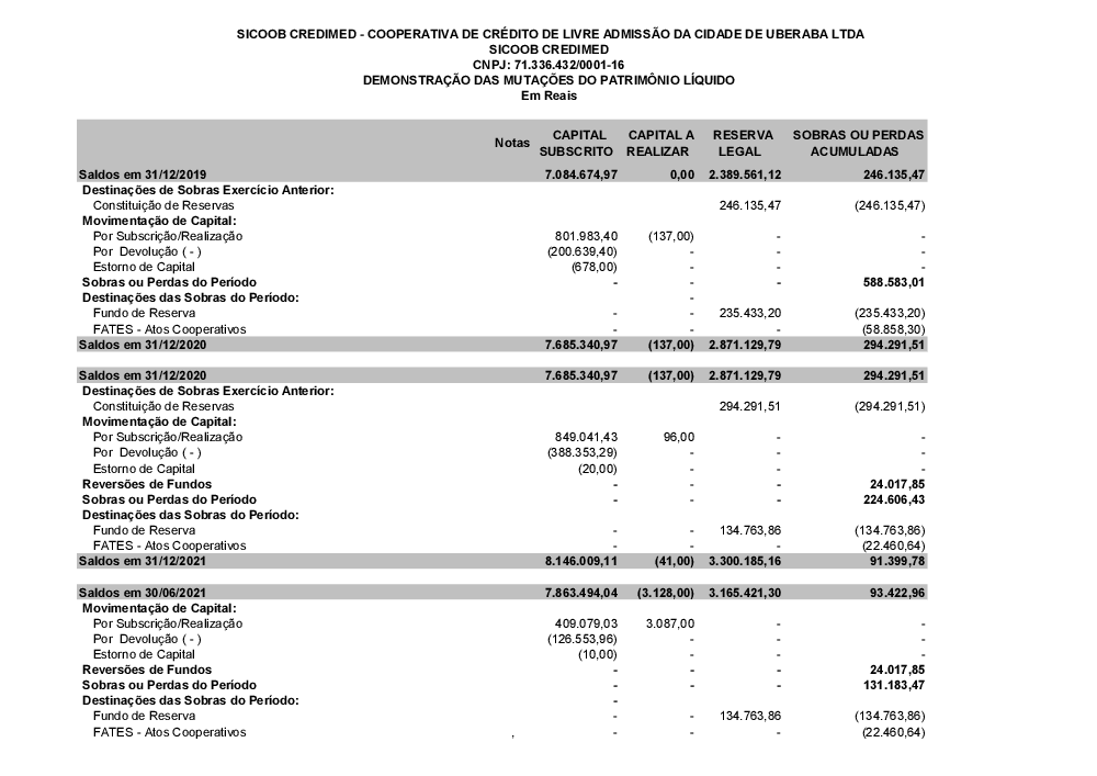 Demonstrações contábeis - Sicoob Credimed