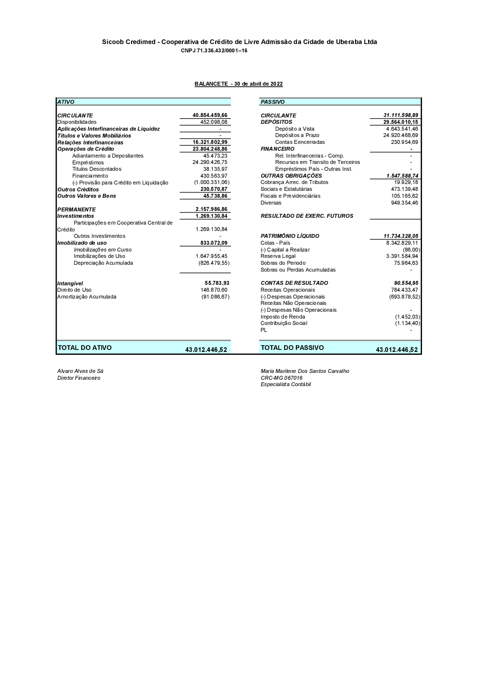 Demonstrações contábeis - Sicoob Credimed