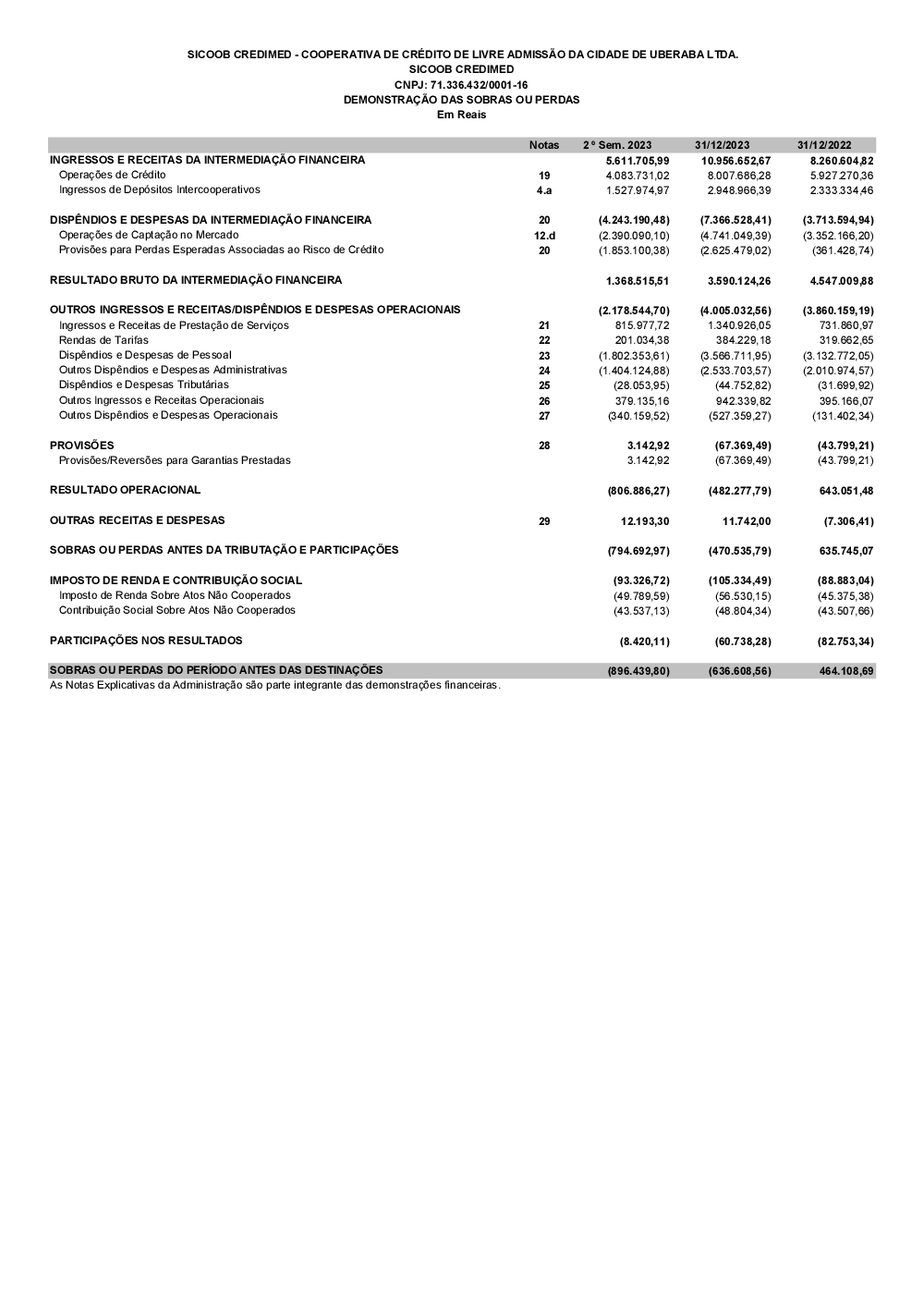 Demonstrações contábeis - Sicoob Credimed