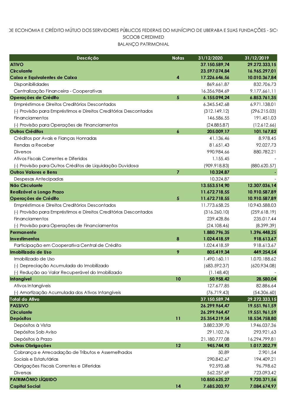 Demonstrações contábeis - Sicoob Credimed