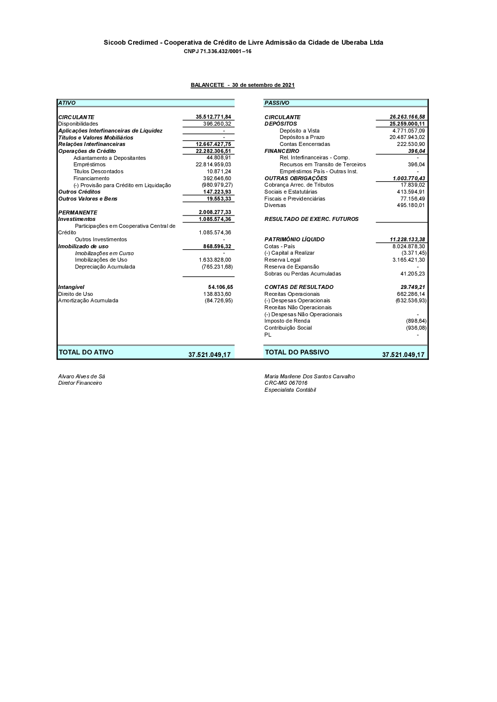 Demonstrações contábeis - Sicoob Credimed