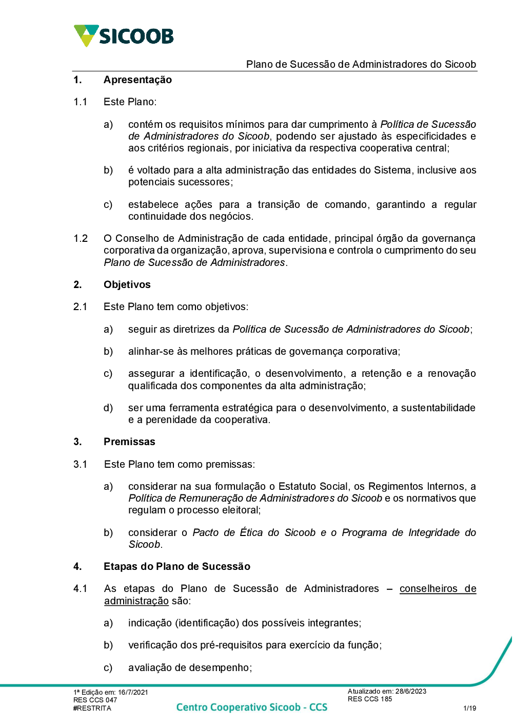 PLANO DE SUCESSÃO DE ADMINISTRADORES