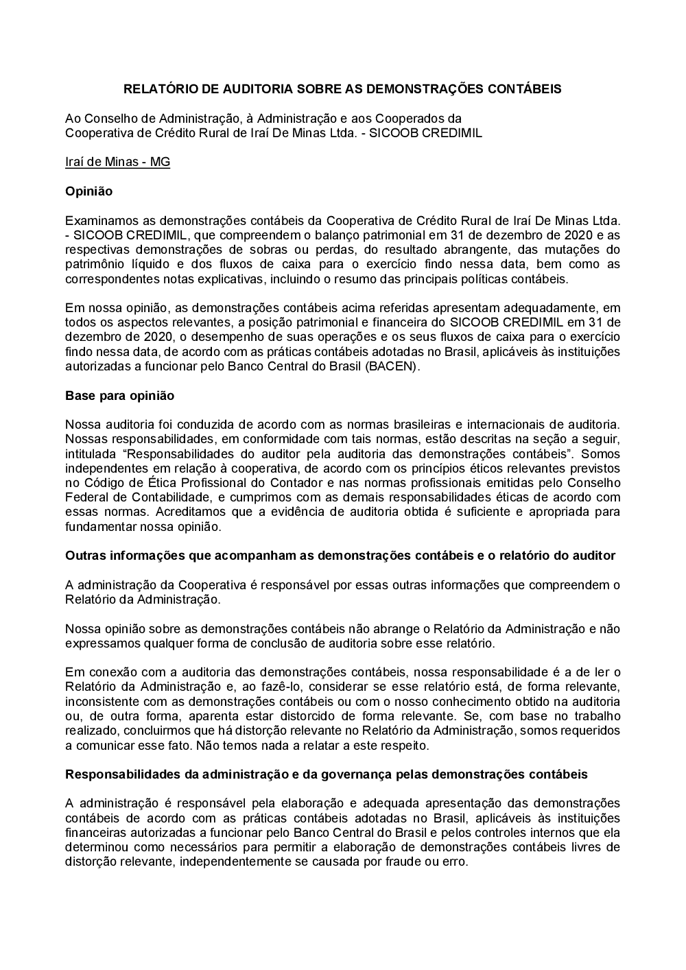 RELATÓRIO DE AUDITORIA SOBRE AS DEMONSTRAÇÕES CONTÁBEIS
