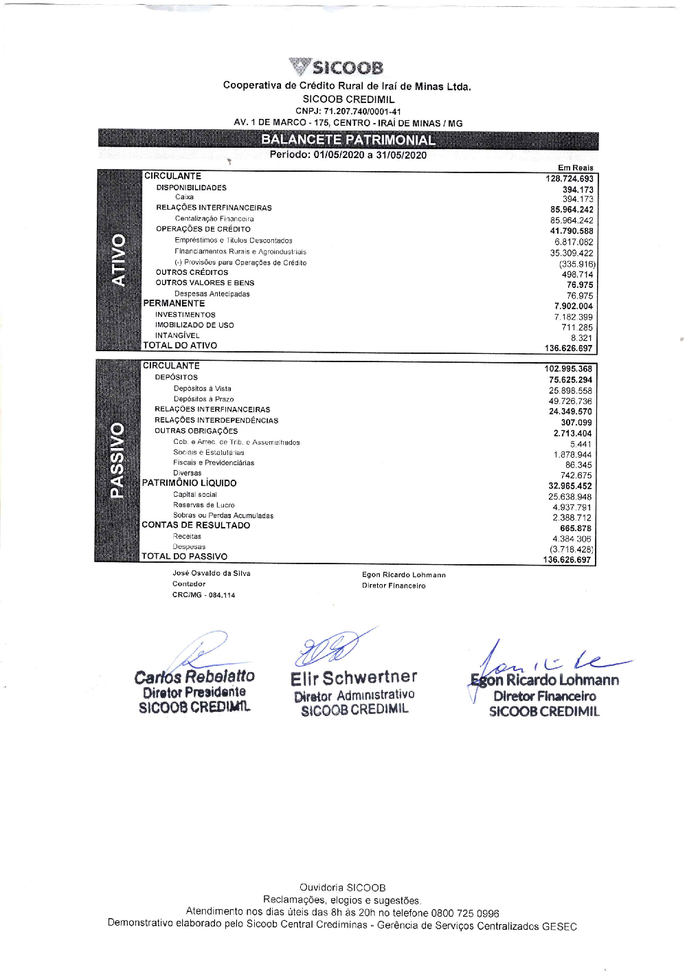 BALANCETE MAIO 2020