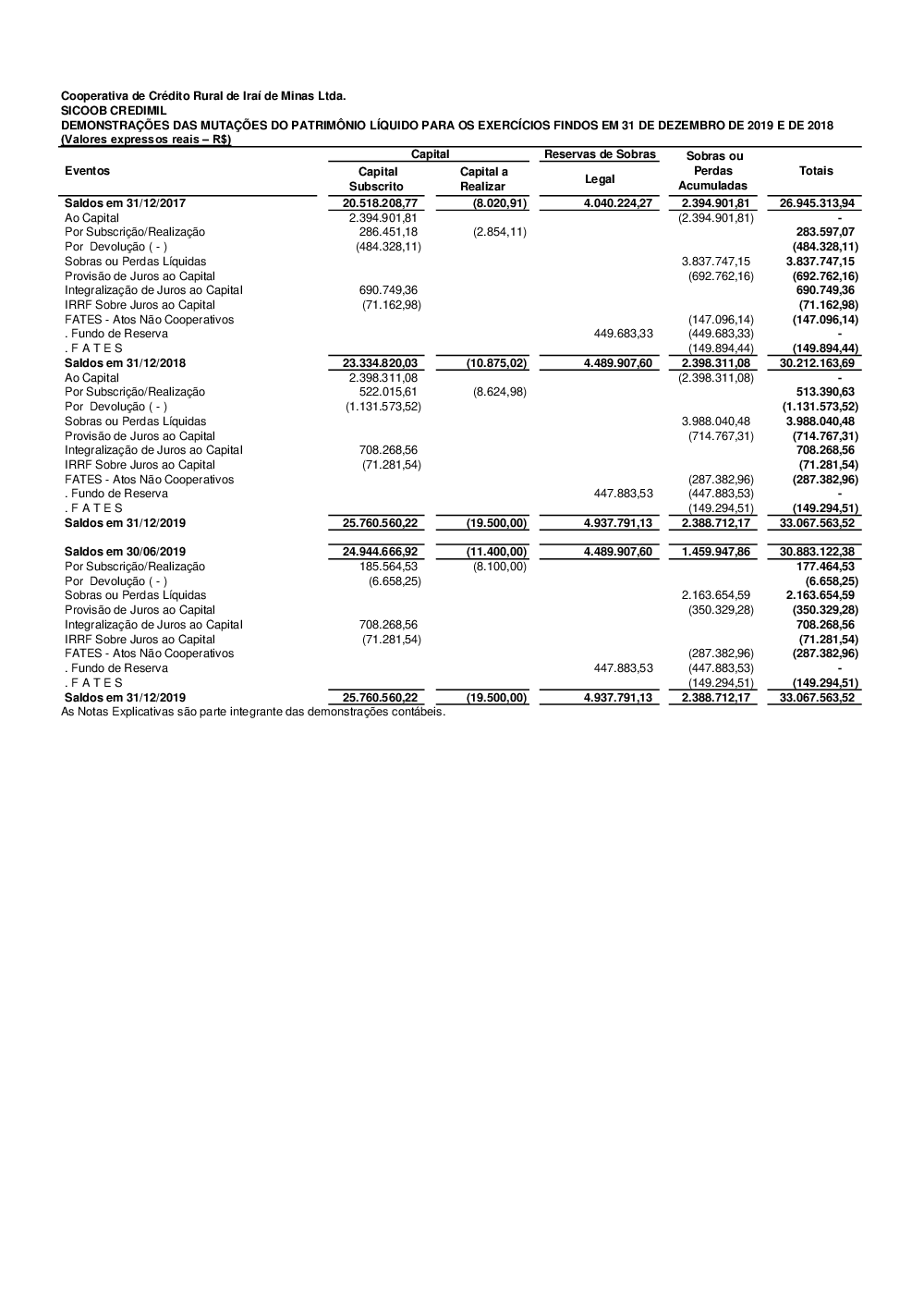Demonstrações Contábeis DMPL 2019 SICOOB Credimil.pdf