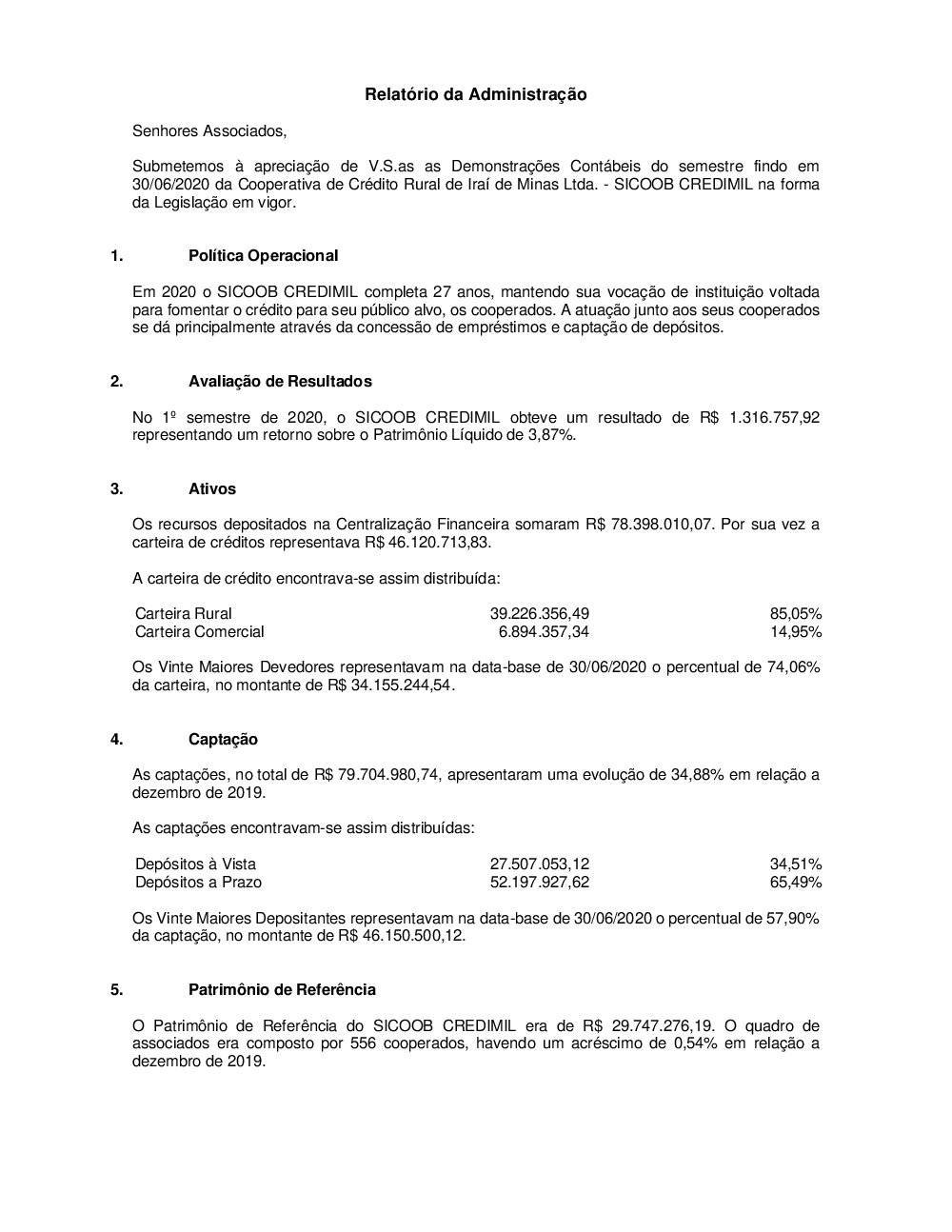 Relatório da Administração 30.06.2020