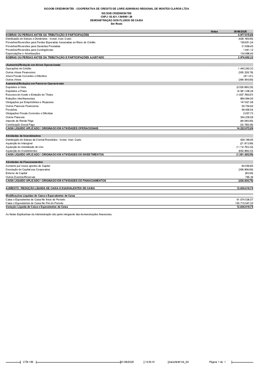 DEMONSTRAÇÃO DOS FLUXOS DE CAIXA 06/2025