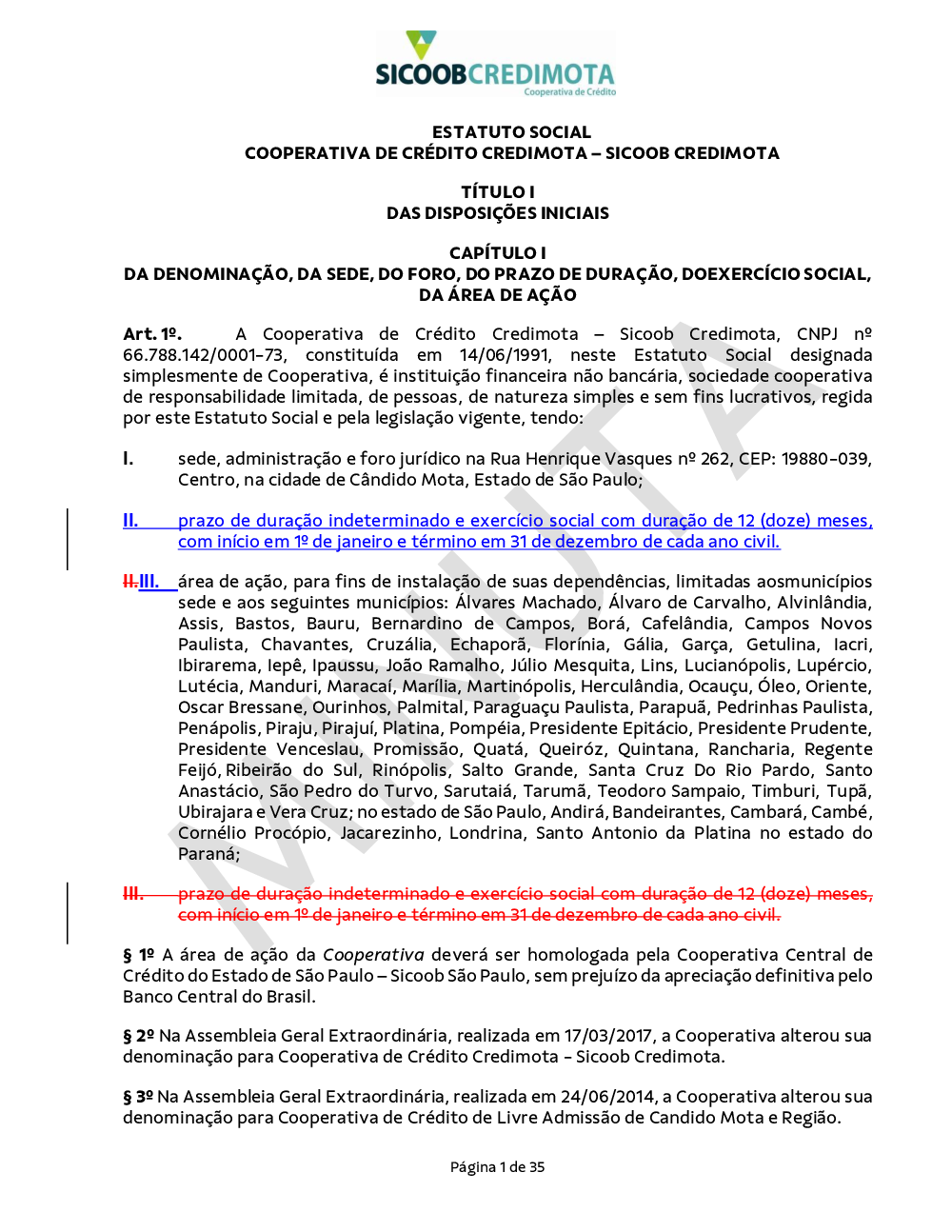 MINUTA - Estatuto Social