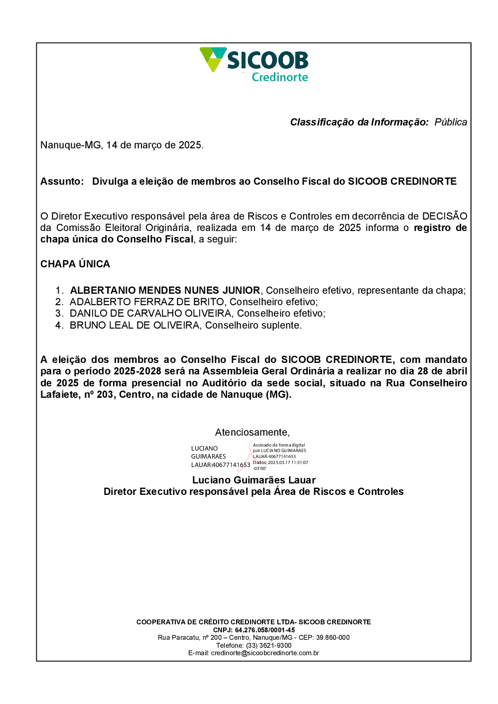 DECISÃO DA COMISSÃO ELEITORAL - CHAPA DO CONSELHO FISCAL 2025-2028.pdf