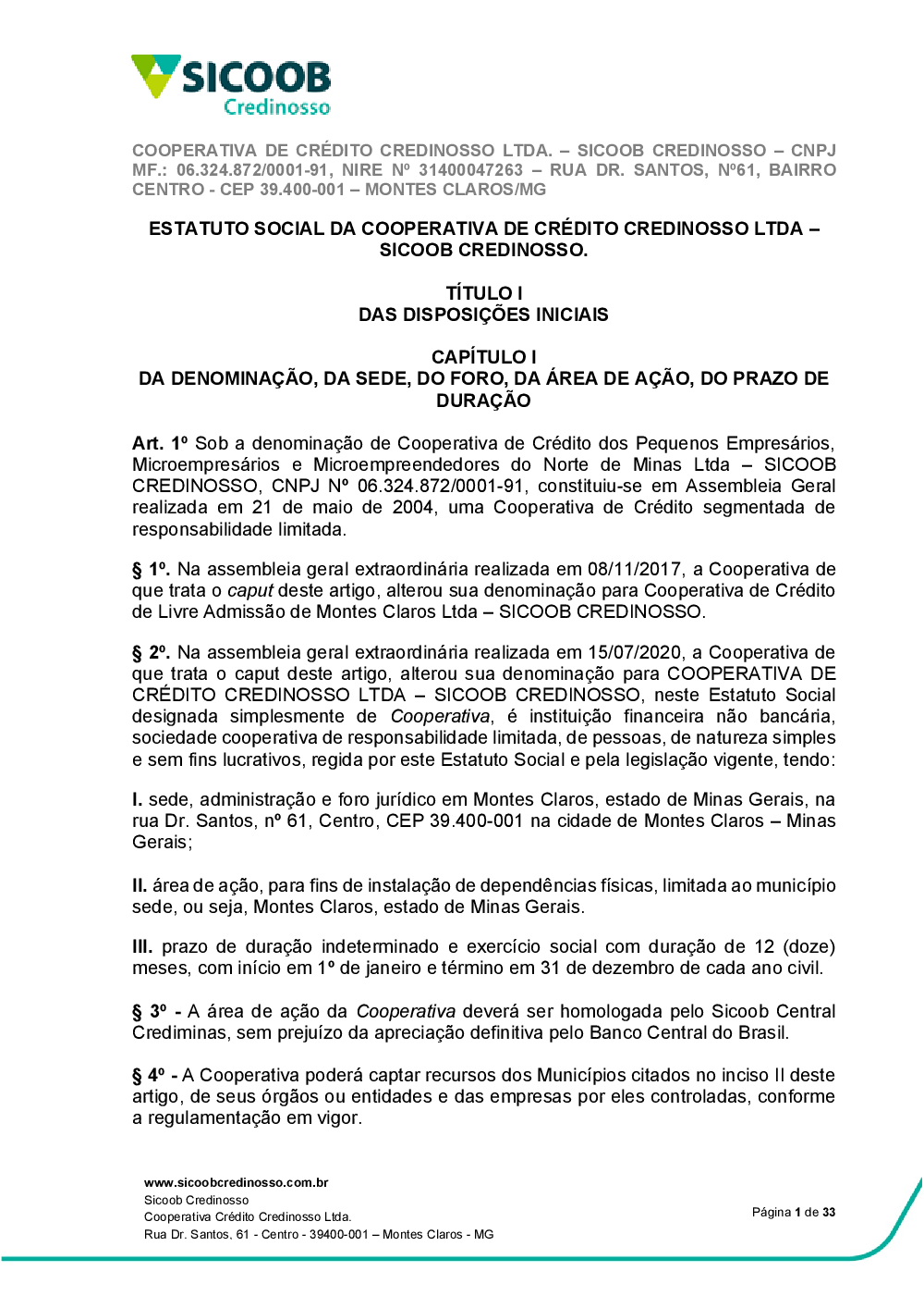 ESTATUTO SOCIAL DA COOPERATIVA DE CRÉDITO CREDINOSSO LTDA - SICOOB CREDINOSSO.pdf