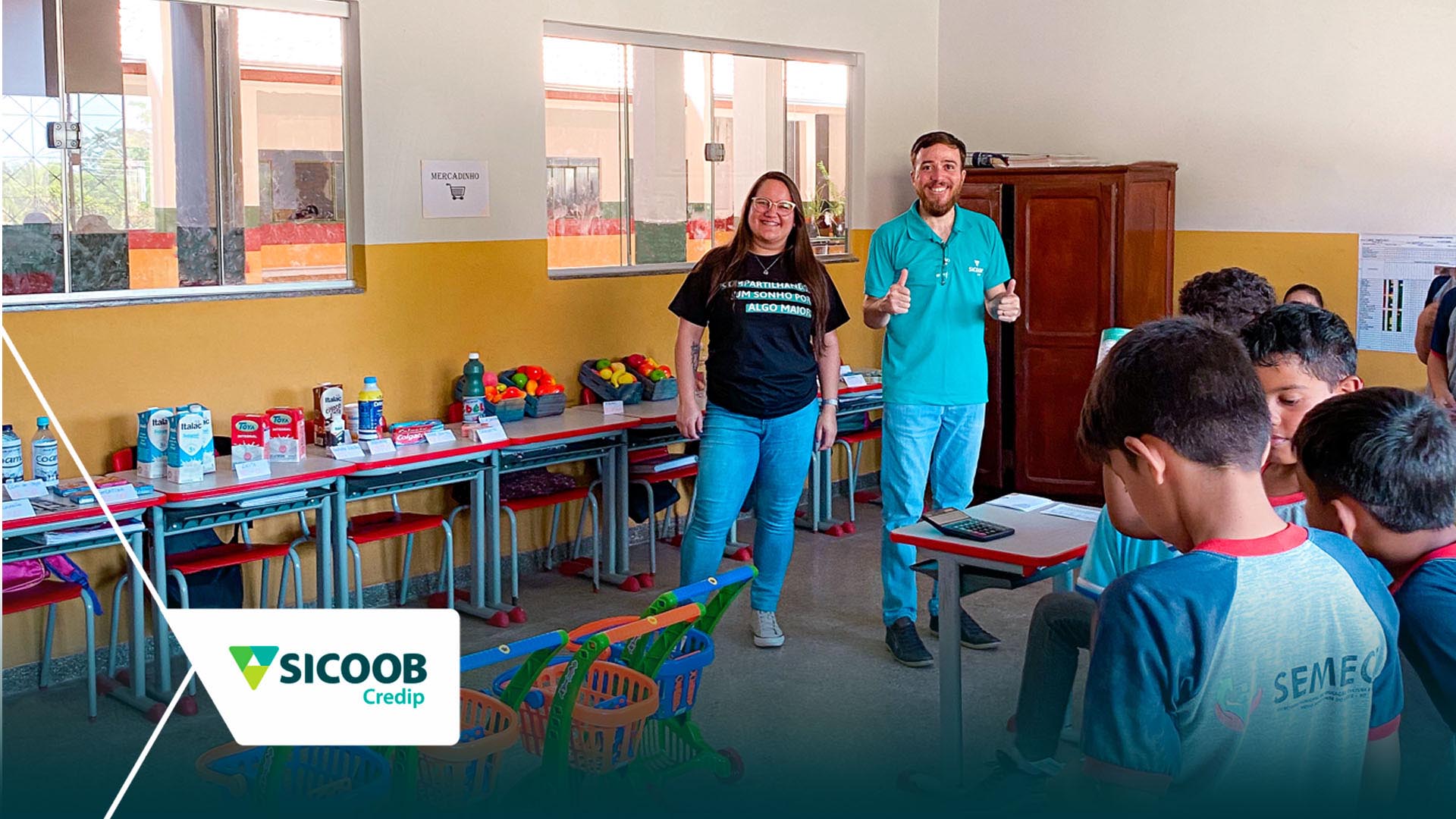 O Programa Financinhas Kids, desenvolvido pela Sicoob Credip, levou aos estudantes do 5º ano do Ensino Fundamental da Escola Sara Kubitschek, no Distrito de Migrantinópolis (RO), a experiência de ter uma aula prática sobre educação financeira de forma dinâmica e divertida. Para isso, os profissionais da Sicoob Credip montaram na sala de aula um “mercado” e um “Ponto de Atendimento'' da Cooperativa, onde os estudantes puderam fazer compras e pagar contas de água e luz.
