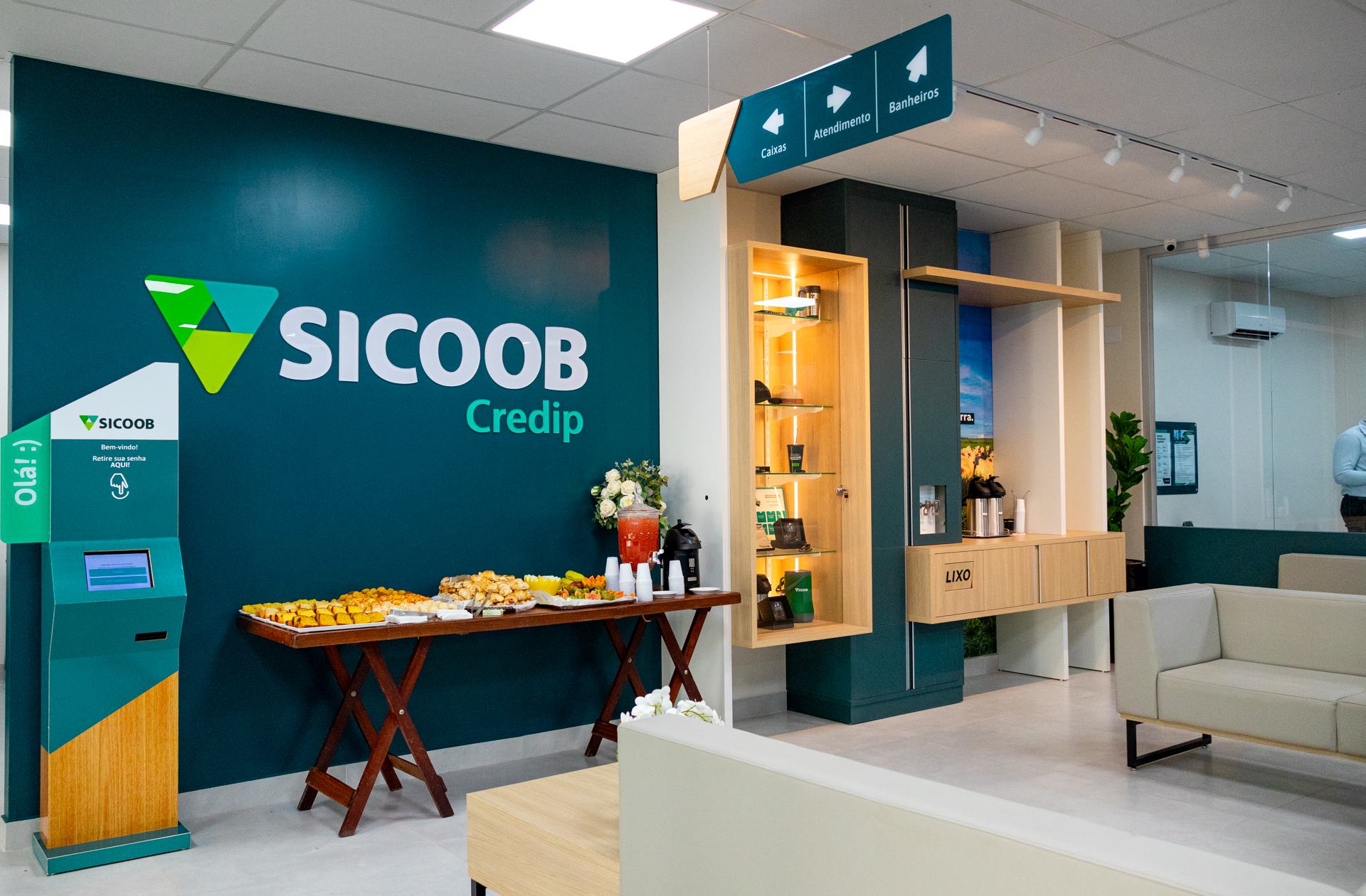 Desde a fachada até o interior, a unidade foi completamente repaginada. A área de espera foi equipada com sofás aconchegantes e climatização otimizada para o conforto dos cooperados. No setor de caixas, a nova mobília foi estrategicamente posicionada para garantir mais privacidade durante as transações, com uma bancada rebaixada para facilitar o acesso de pessoas com deficiência, como cadeirantes.