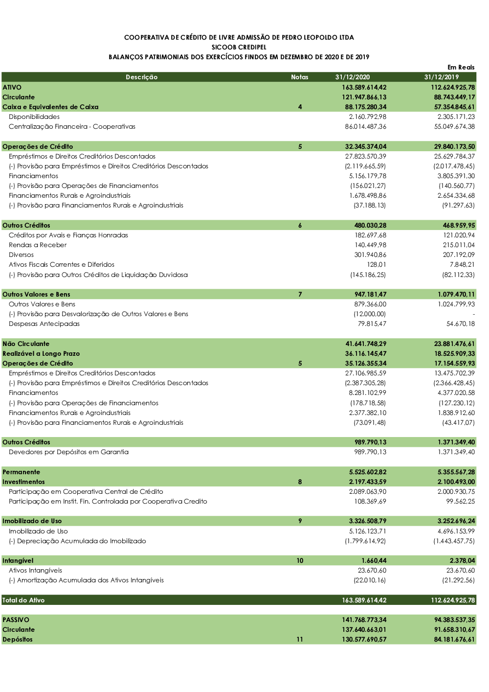 - BALANÇOS PATRIMONIAIS DOS EXERCÍCIOS FINDOS EM DEZEMBRO DE 2020 E DE 2019
