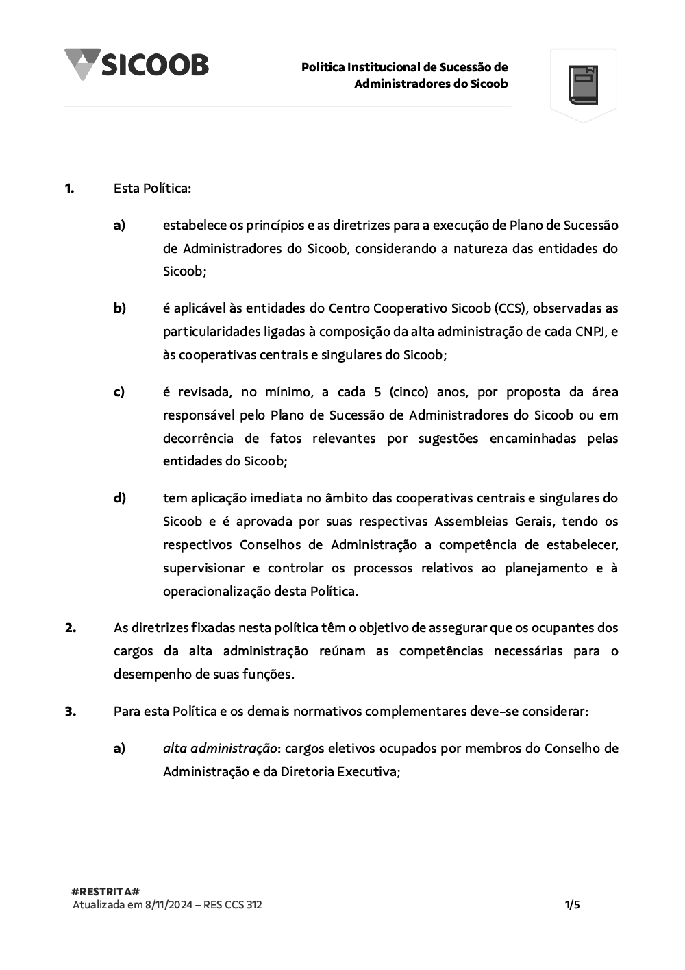 (Política Institucional de Sucessão de Administradores do Sicoob)