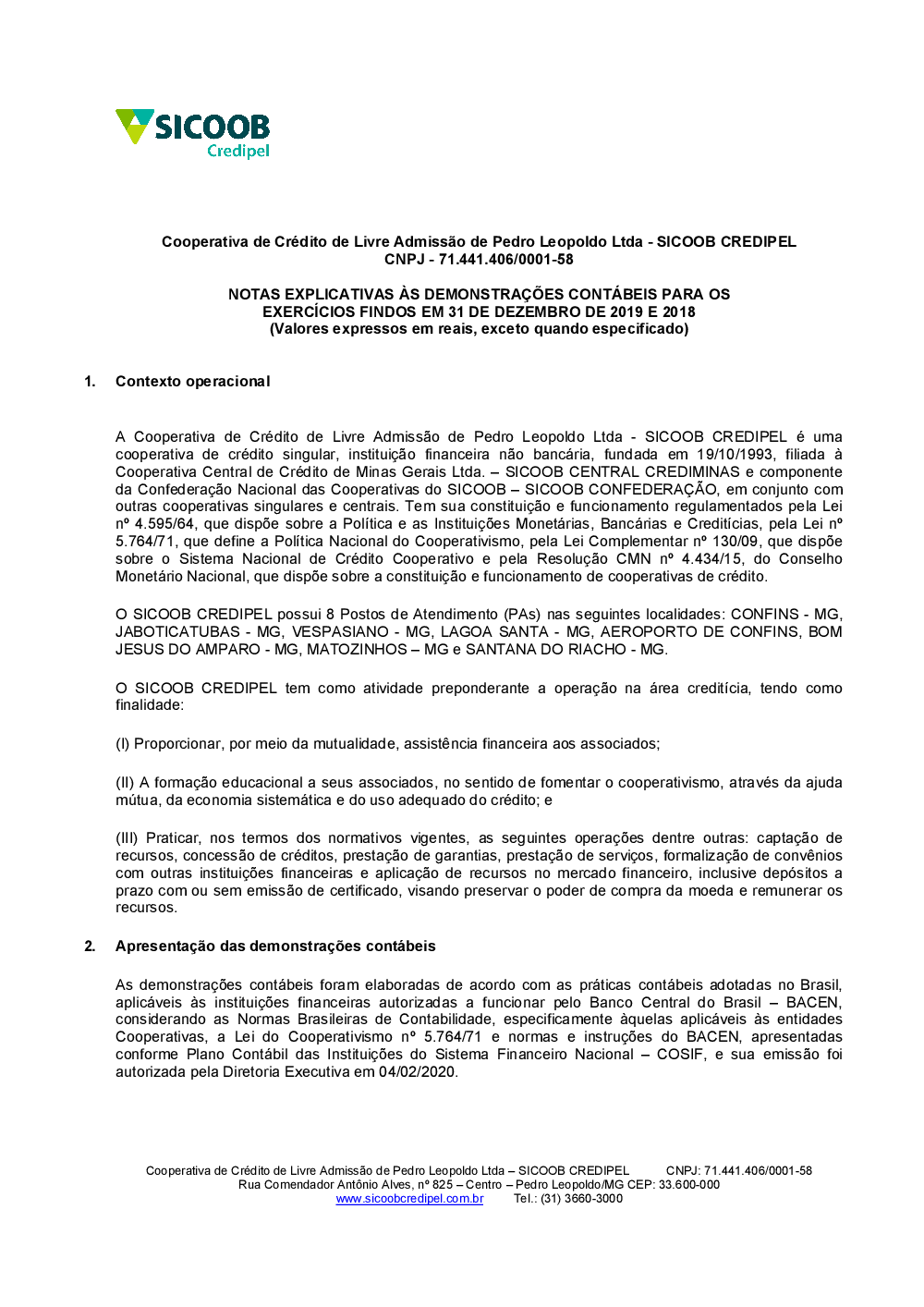 Microsoft Word - 3157 - Sicoob Credipel - Notas explicativas 31 12 2019 final