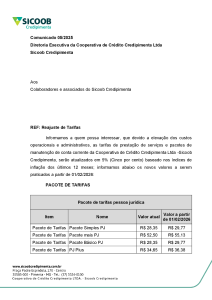 Tarifas Vigentes - Relatórios - Sicoob Credipimenta