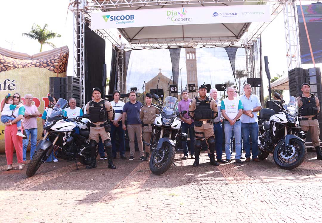 A comunidade também se exercitou com aulão de FitDance ao som do Dj, assistiu a linda apresentação dos alunos da Apae, além de apreciar a bela apresentação da Banda de Música da 9ª Região da Polícia Militar. E durante o evento, na presença de autoridades e empresas parceiras, também aconteceu a entrega das motocicletas à Polícia Militar via ACII, sendo uma delas, fruto da doação do Sicoob Credipontal.